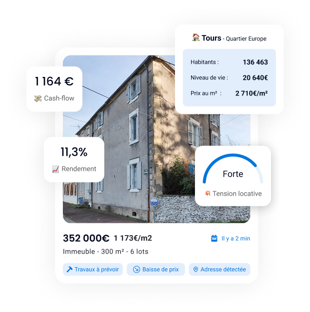 Notre moteur de recherche unique vous permet d'appliquer des dizaines de filtres faits pour les investisseurs par des investisseurs. Découvrez par exemple toutes les annonces immobilières en baisse de prix publiées sur plus de 1500 sites immobiliers.